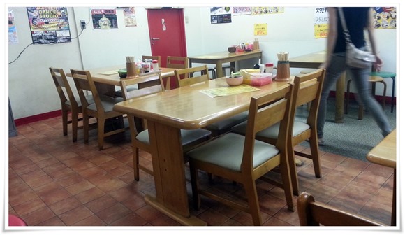 店内入って左手方向にカウンター席が8席程度。入口真正面にテーブル席が5卓ぐらいかな?これぞ昔懐かしいラーメン屋って感じの雰囲気の店内です。