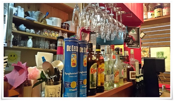 外のテーブル席を勧められるも店内のカウンター席をチョイス。ワイングラスがズラリ並びいい雰囲気を醸し出していますね。
