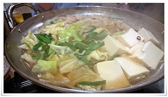 メニューにもドカンと紹介されている「もつ鍋」の登場です。(これ二人前だったかな?)さすがうどん屋さんのモツ鍋。鍋に投入されているであろうスープが旨々だったような。(すでに昼飲み四軒目、それ以外の記憶はありません…)