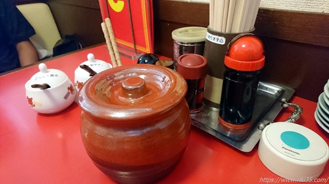 支那そばが到着するまでテーブルに標準装備されている調味料の数々を確認しておきましょう。