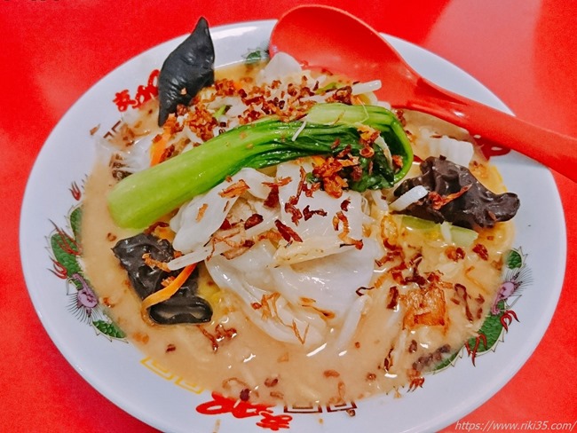 チンゲン菜が素敵な色合いを出しています。またその風貌からは観てとれませんが大量の野菜が投入されておりボリューム満点なんです。(オーダーミスがいい方に転びました)