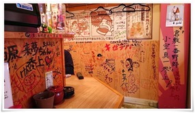 店内の壁面は落書きだらけ。自由に飲める雰囲気が漂っている居酒屋さんです。