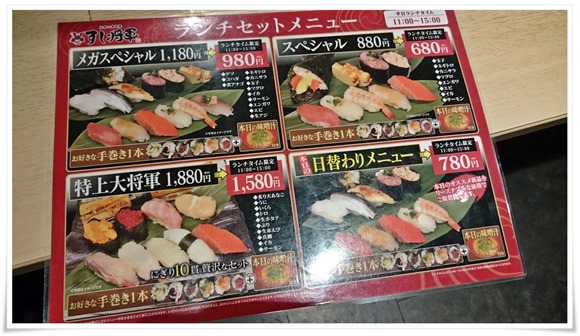 こちらが「ランチセットメニュー」になります。店内では「メガスペシャル・スペシャル・特上大将軍・本日の日替わりメニュー」と4種類のセットメニューが用意されています。