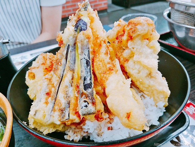 茄子・舞茸・ピーマン・かぼちゃ・イカ・キス・海老と具材満載。これ思いのほかボリューム満点ですね。大好物の茄子がデカくて食べ応え抜群でした。
