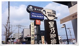 井堀の交差点を中井方面に曲がると右手に大きな「星乃珈琲店」の看板が目に入ってきます。こちらも黒崎店と同じく『釜あげのスパゲティー 洋麺屋五右衛門』さんとの併設店舗となっています。