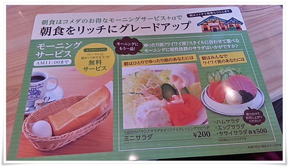 はい。皆さんご存知かとは思いますが『コメダ珈琲店』さんでは、午前11時までの時間限定でドリンクをオーダーすると「トースト」と温かい「ゆで玉子」が無料で付いてくるモーニングサービスを実施されているんです。(これはお得です)